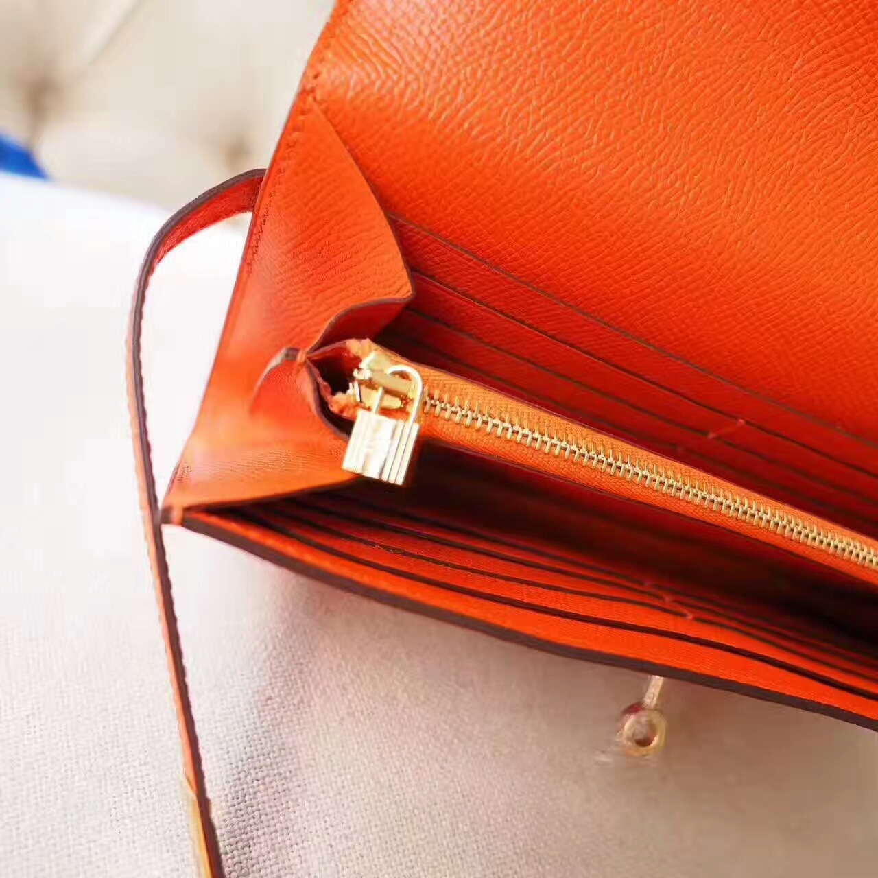 Kelly Wallet 长款凯莉钱包 Epsom 9J 火焰橙 Feu 金扣 HERMES 爱马仕 2017年8月10日 0 三越名品 | 微信: 364025 Epsom Kelly钱包 现货,最新色哟,kelly wallet 长款凯莉钱包 epsom 9J 火焰橙 feu 金扣,最鲜艳的橙色