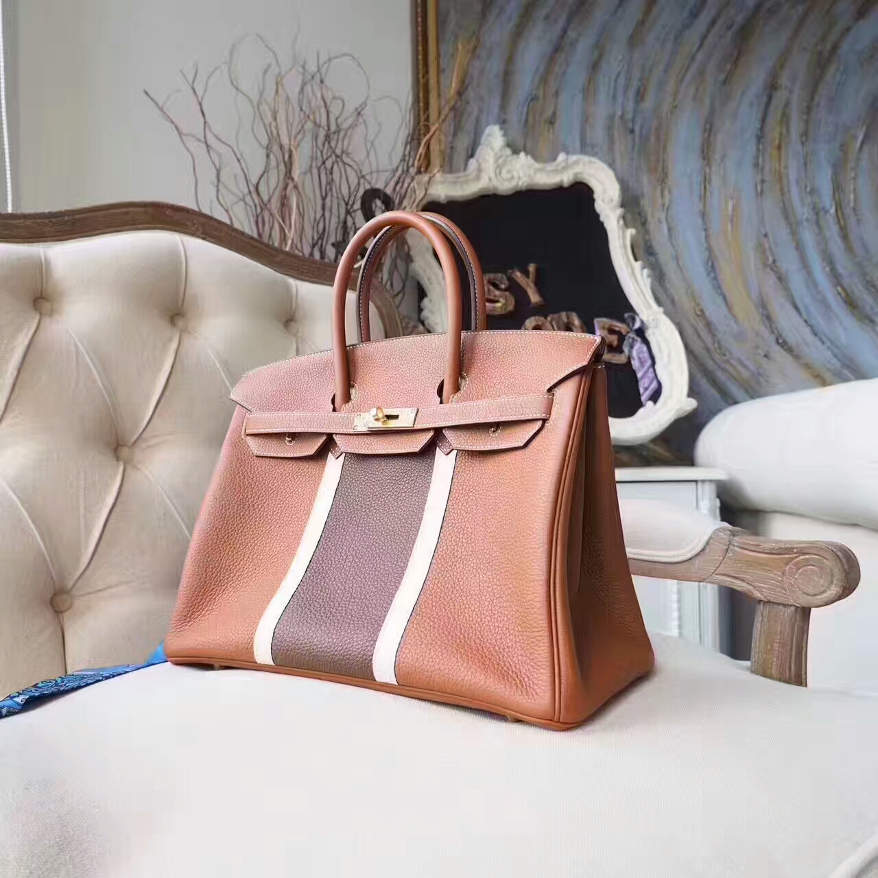 Birkin 30 限量Club系列 金棕 Gold 拼栗子色 拼杏色蜥蜴彩条 金扣 爱马仕 2017年8月12日 0 三越名品 | 微信: 364025 Birkin 30CM 现货出货咯,birkin 30 限量club系列 金棕 gold 拼栗子色,拼杏色蜥蜴彩条 金扣,特别的款式永远值得收藏一枚,拿出去总是那么让人羡慕