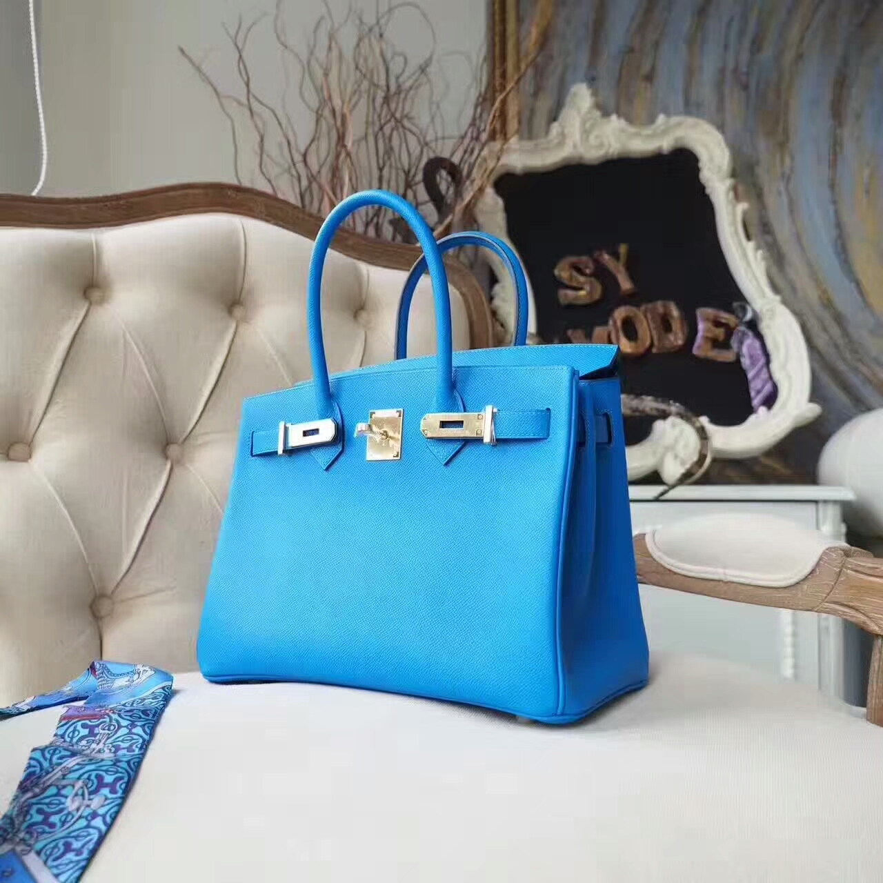 Birkin 30 Epsom B3 新水妖蓝 坦桑尼亚蓝 Zanzibar Blue 金扣 爱马仕 2017年8月12日 0 三越名品 | 微信: 364025 Birkin 30CM Epsom 现货,最最最新色b3,birkin 30 epsom b3 新水妖蓝 坦桑尼亚蓝 zanzibar blue 金扣,炒鸡鲜艳,饱和度最高的蓝色,美不胜收,这季节最合适