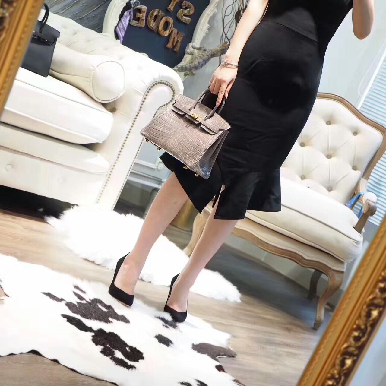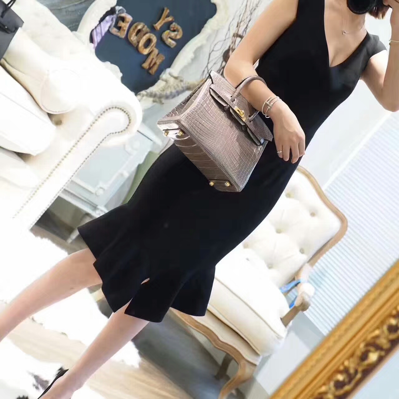 BK25 亮面鳄鱼 斑鸠灰 模特图 2017年8月17日 0 三越名品 | 微信: 364025 Birkin 25CM Niloticus 尼罗鳄 Porosus 湾鳄 bk25 亮面鳄鱼 斑鸠灰 模特图
