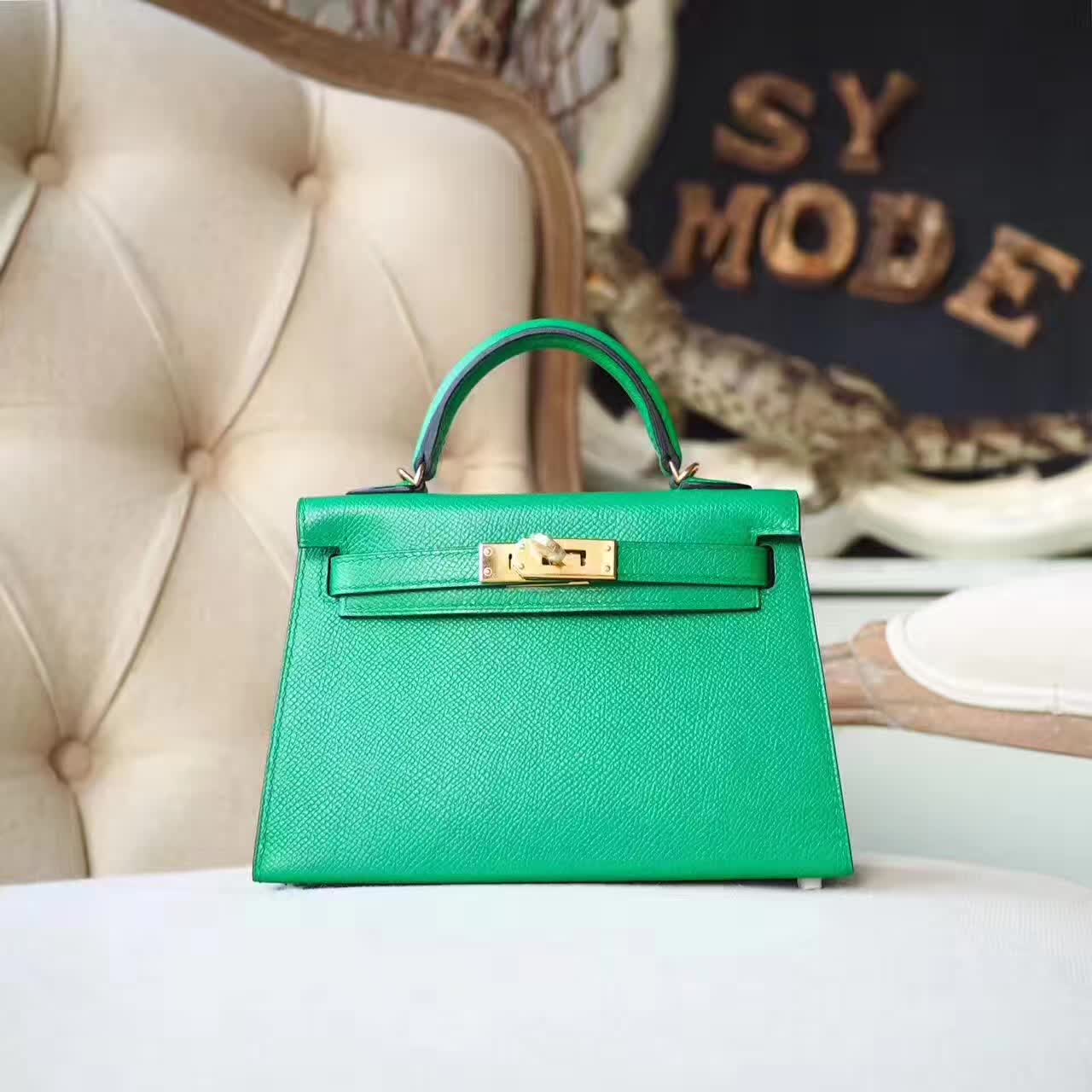 现货 今年卖疯了 mini kelly 2代 超级可爱 epsom 竹子绿 1k bambou 金扣