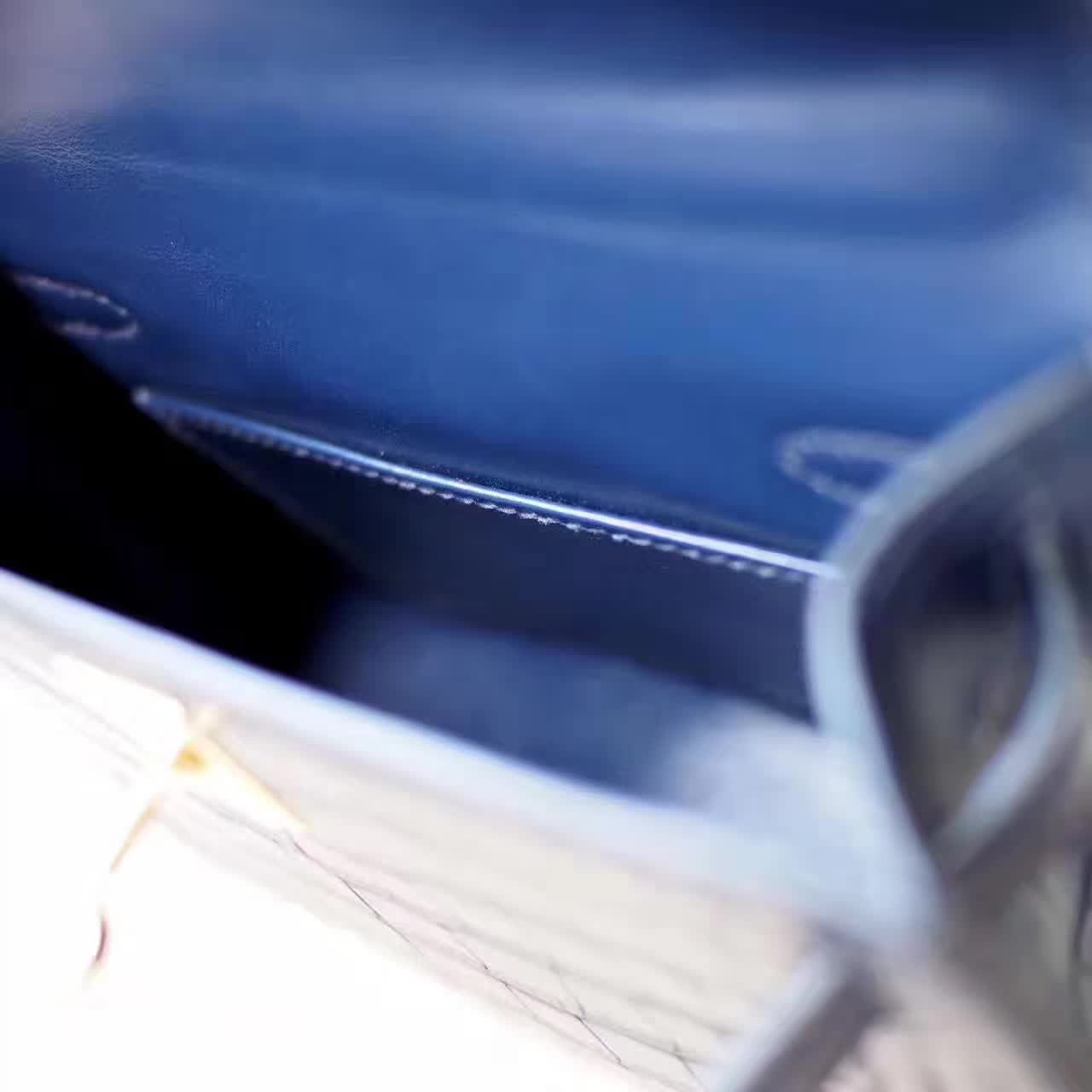 Mini Kelly 1代 Niloticus 尼罗鳄 现货 Mini Kelly Pochette 22cm 晚宴包 小手包 1代 亮面两点鳄鱼 N7 风暴蓝 Blue Tampete 银扣 2017年4月25日 0