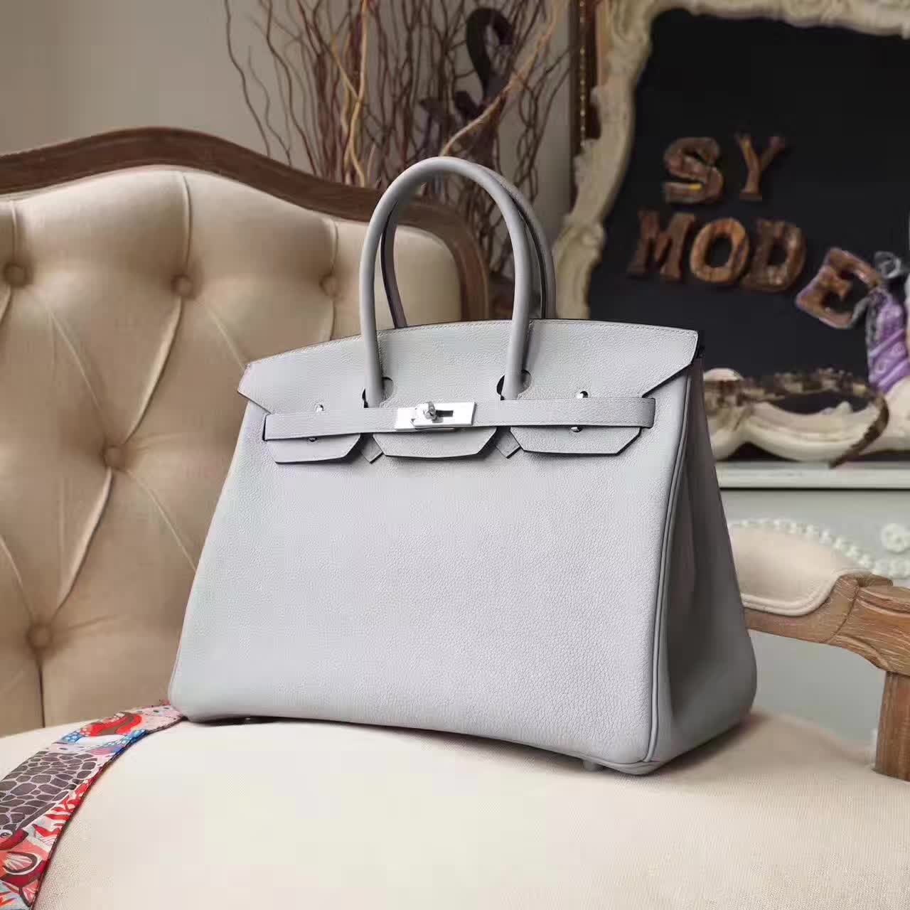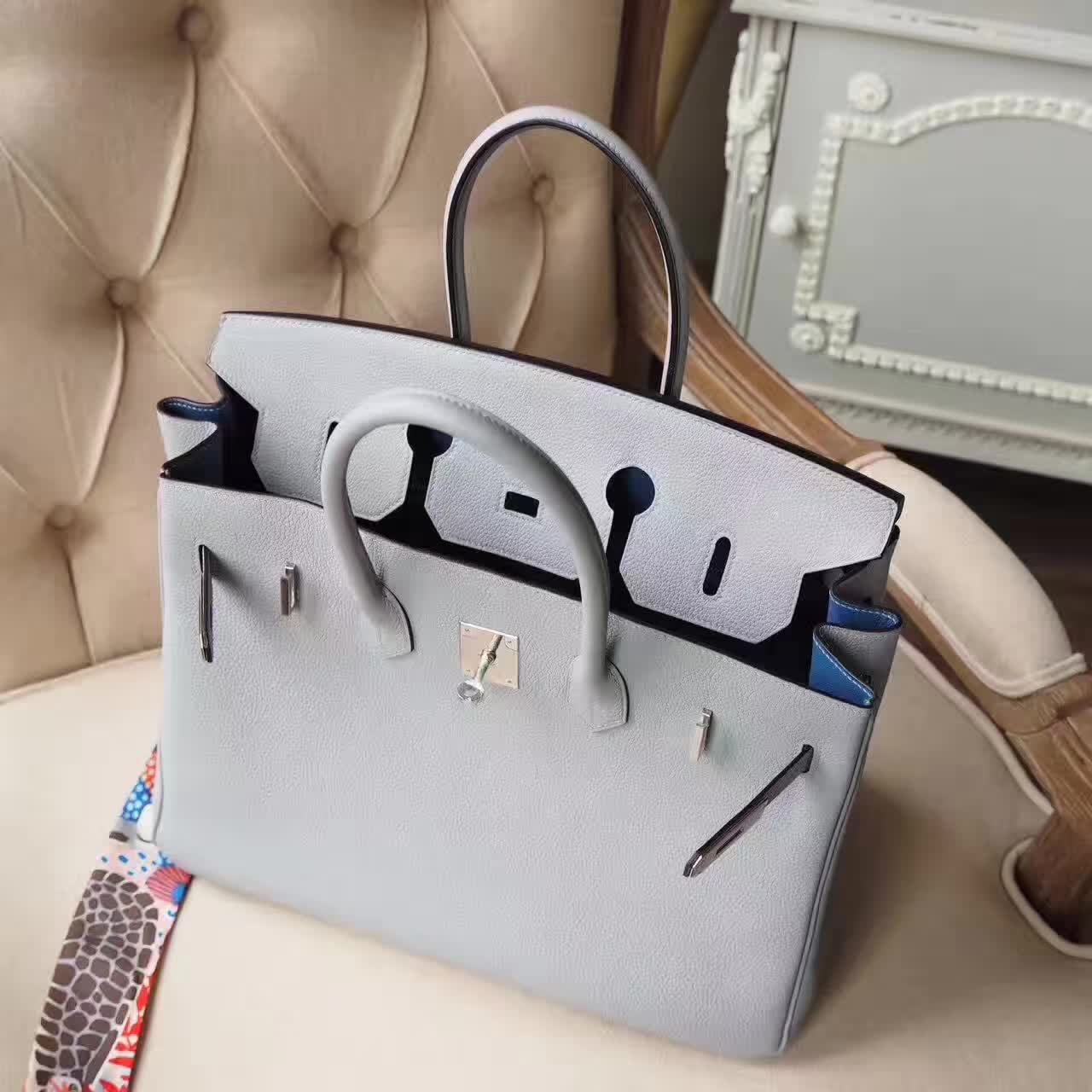Birkin30 Togo 海鸥灰 4Z Gris Mouette 内拼 R2 玛瑙蓝 Blue Agate 银扣 2017年6月23日 0 三越名品 | 微信: 364025 Birkin 30CM Togo 30有现货,最最美的最新组合,birkin togo 海鸥灰 4z gris mouette 内拼 r2 玛瑙蓝 blue agate 银扣,很有质感的两个颜色,拼在一起简直完美了,低调大方,打开又有惊喜,一点都不俗