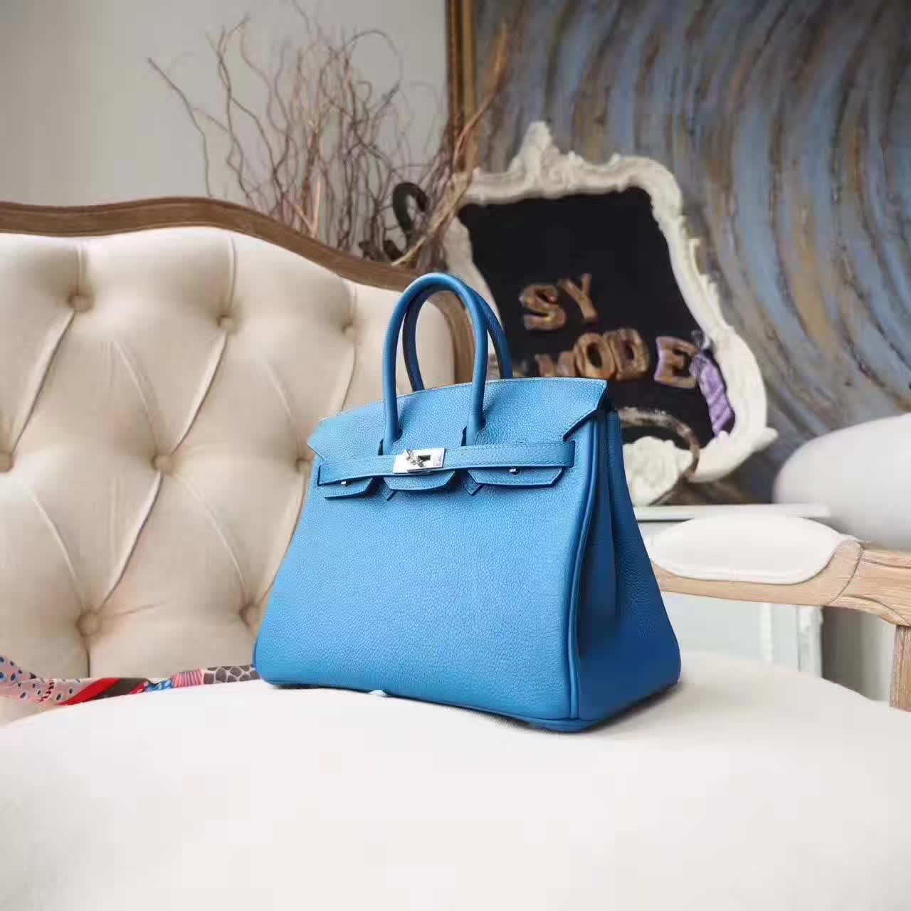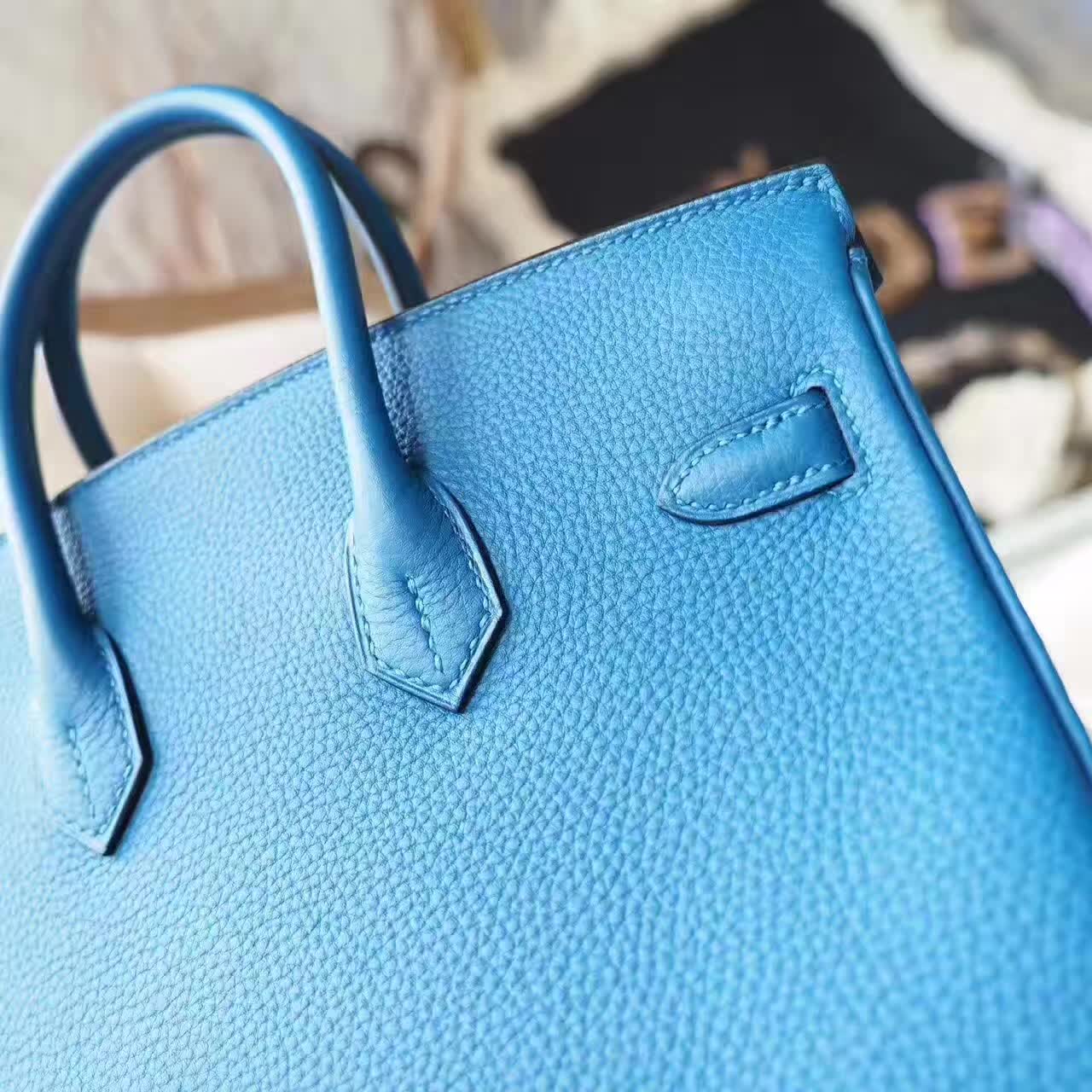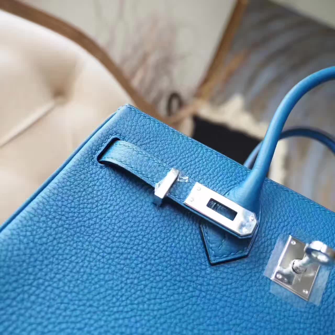 Birkin 25 小可爱 Togo 7W 伊兹密尔蓝 Blue Izmir 银扣 爱马仕 2017年7月15日 0 三越名品 | 微信: 364025 Birkin 25CM Togo 现货三个我还没拍照就卖了,有在做,birkin 25 小可爱 togo 7w 伊兹密尔蓝 blue izmir 银扣,蓝色上面发绿,很特别,休闲装正装都能配