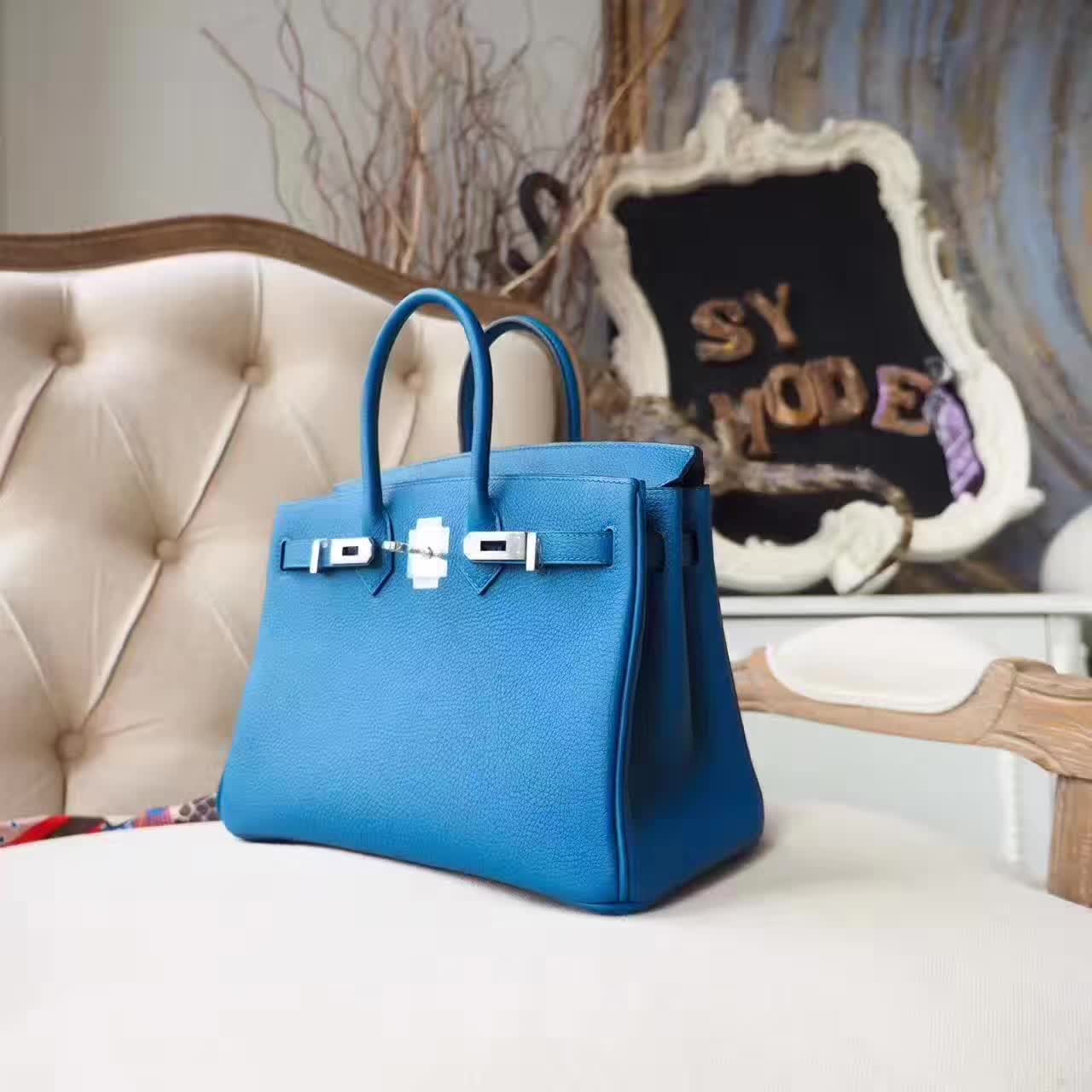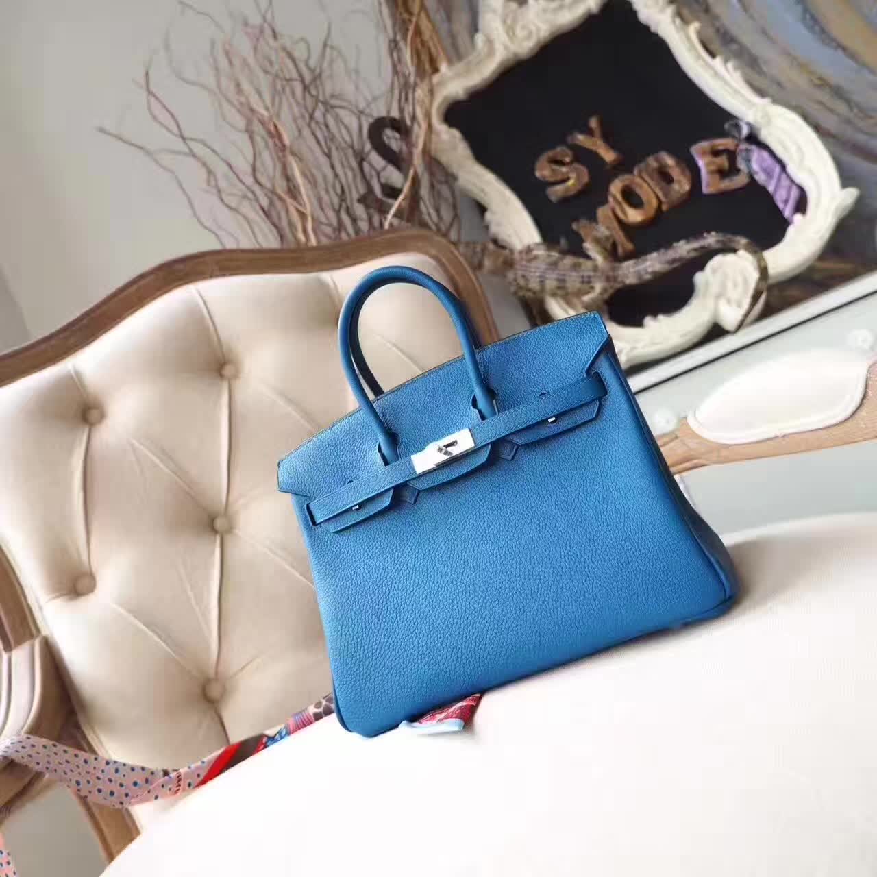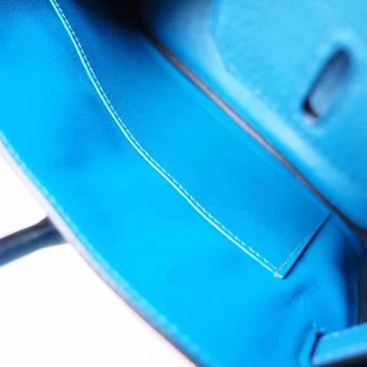 Birkin 25 小可爱 Togo 7W 伊兹密尔蓝 Blue Izmir 银扣 爱马仕 2017年7月15日 0 三越名品 | 微信: 364025 Birkin 25CM Togo 现货三个我还没拍照就卖了,有在做,birkin 25 小可爱 togo 7w 伊兹密尔蓝 blue izmir 银扣,蓝色上面发绿,很特别,休闲装正装都能配